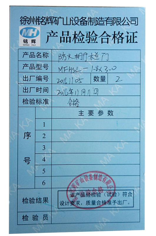 本防火及柵欄兩用門為煤炭工業部武漢煤礦設計研究院設計,產品質量標準和檢測標準嚴格執行Q/WMS-3011-2005《防火及柵欄兩用門》。